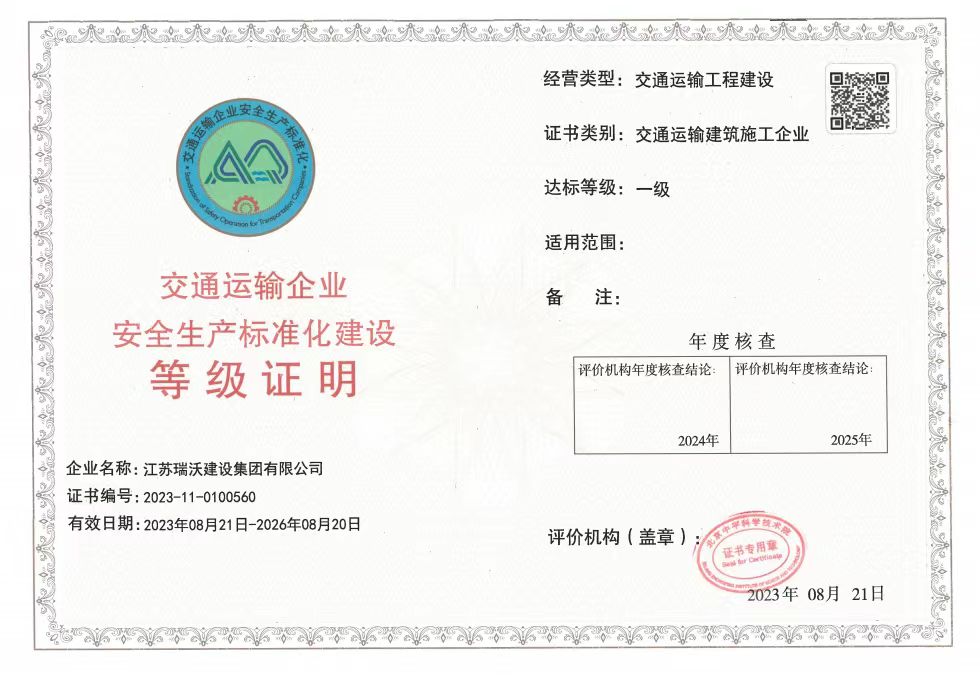 江蘇瑞沃建設(shè)集團有限公司成立于2007年,是一家以市政、交通工程建設(shè)為主導(dǎo),集房屋建筑、交通安全設(shè)施、城市道路照明工程、電力工程、隧道工程、航道工程及投融資為一體的綜合性企業(yè)。企業(yè)注冊資本60000萬元,現(xiàn)有各類技術(shù)人員580人,其中中、高級以上人員498人,注冊類人員268人,一、二級建造師166人。公司榮獲“江蘇省建筑業(yè)優(yōu)秀企業(yè)”、“江蘇省五一勞動獎狀”,連續(xù)多年被評為“揚州市先進企業(yè)”、“江蘇省建筑業(yè)百強企業(yè)”,連續(xù)八年蟬聯(lián)百強企業(yè)基礎(chǔ)設(shè)施類第一名。